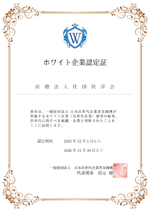 この度、当院は初めて「ホワイト企業認定」を受審し、2025年12月に一般財団法人日本次世代企業普及機構(通称:ホワイト財団)より、ホワイト企業認定のブロンズランクに認定されましたことをお知らせいたします。